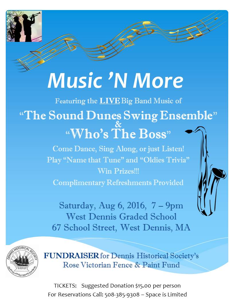 The suggested Donation of $15.00 per person goes toward raising funds for the Dennis Historical Society’s Rose Victorian Fence and Paint Fund. Attendees are advised to make reservations by calling 508-385-9308 because space in limited.