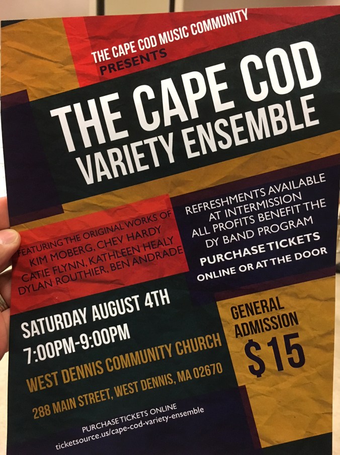 General Admission Tickets, $15, may be purchased at the door or online at https://www.ticketsource.us/cape-cod-variety-ensemble . All profits from the event will benefit the Dennis-Yarmouth Band Program. Refreshments will be available at intermission. The event is presented by the Cape Cod Music Community.